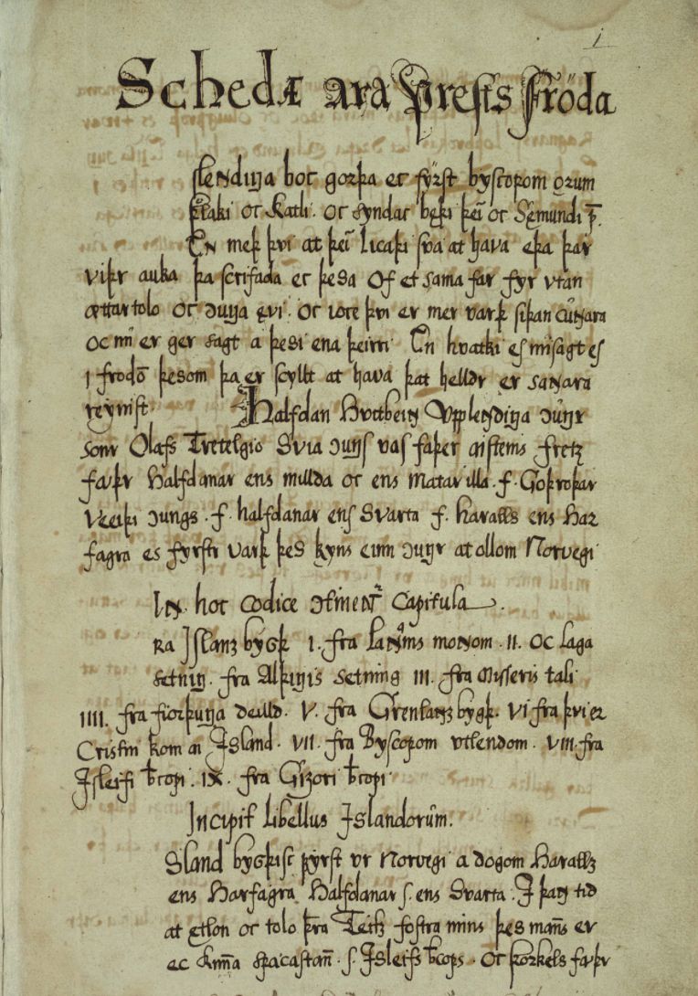 Source : Copie de l'Íslendingabók par Jón Erlendsson, conservée à l'institut Árni Magnússon, fr.wikipedia.org