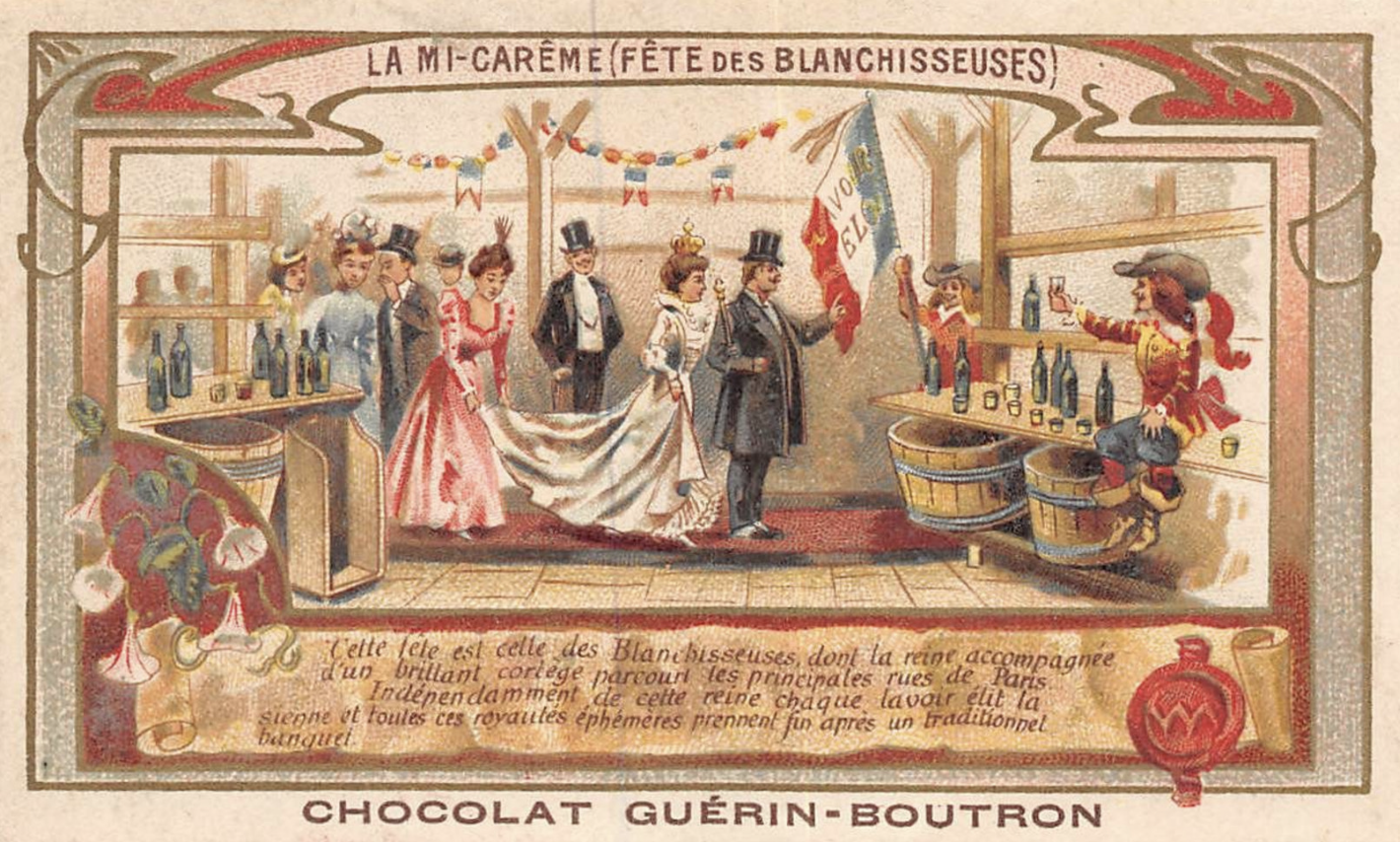 Au XIXᵉ siècle, la fête des blanchisseuses est l’un des moments forts du carnaval de Paris. Après le défilé du bœuf gras (défilé organisé par les bouchers de la ville), ce sont les femmes de la corporation, lavandières, repasseuses, buandières, qui prennent possession des boulevards : elles chantent, dansent, se costument et élisent, dans chaque lavoir, leur reine.